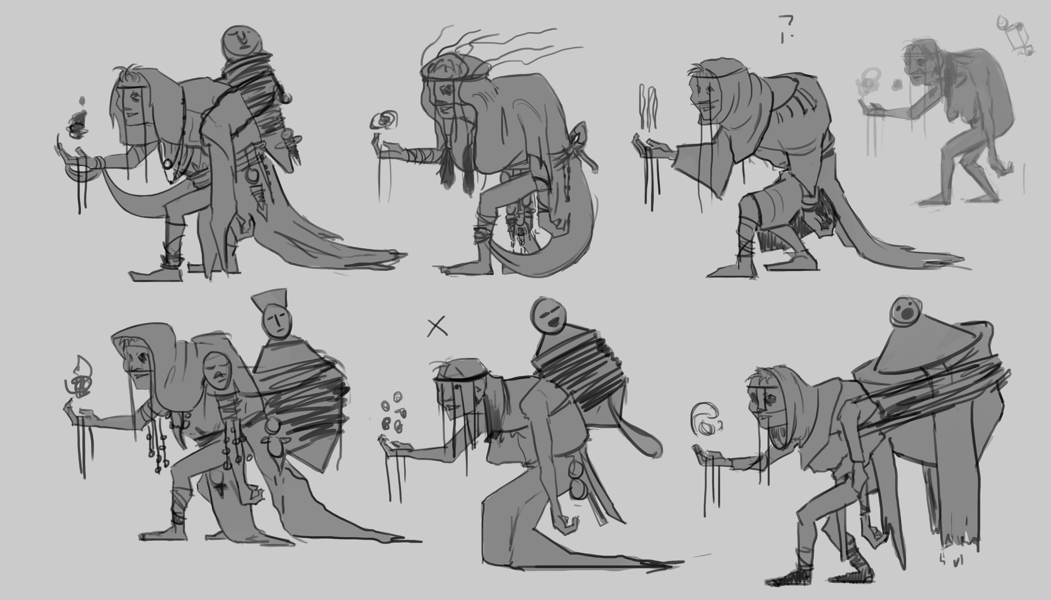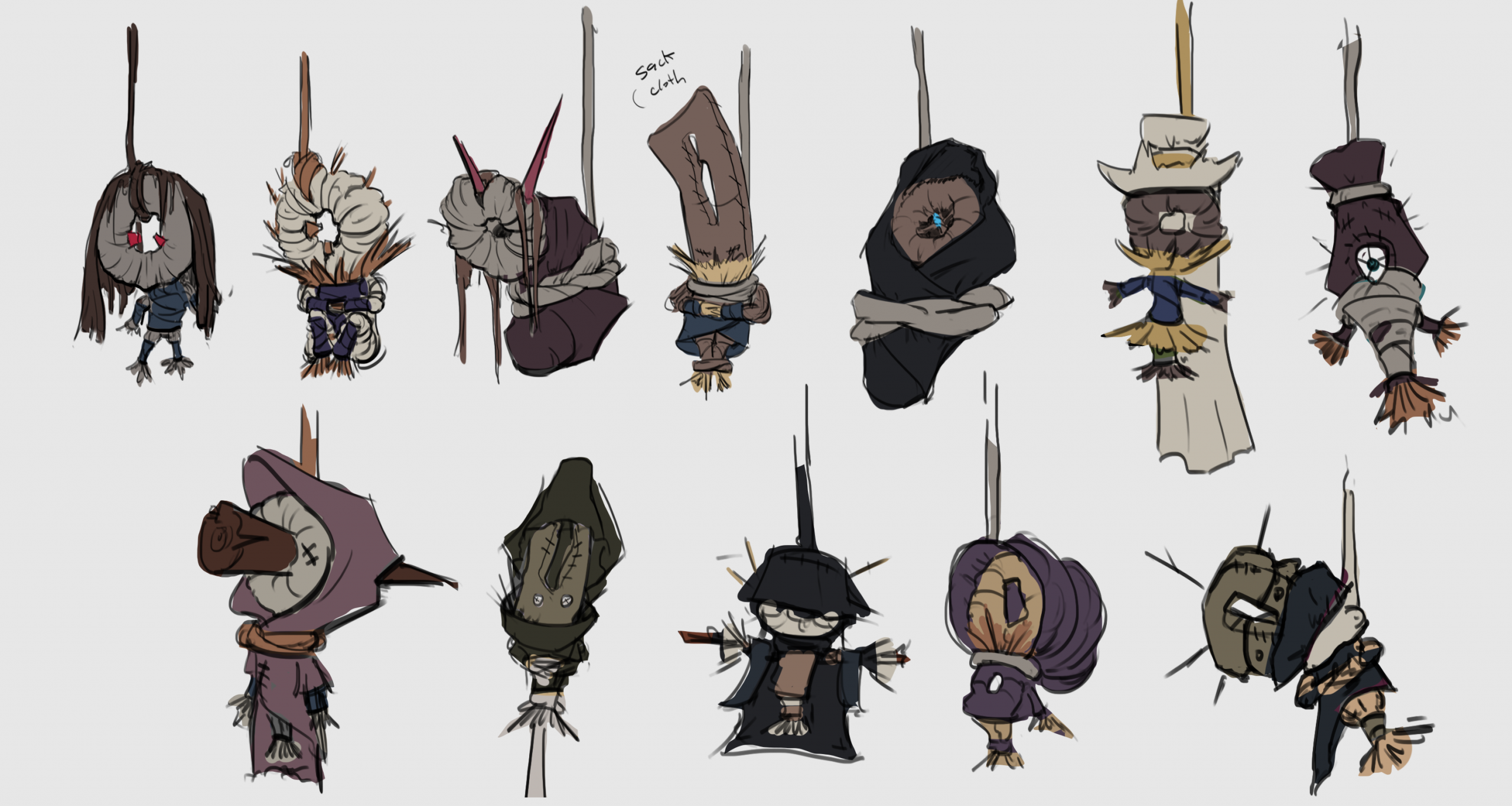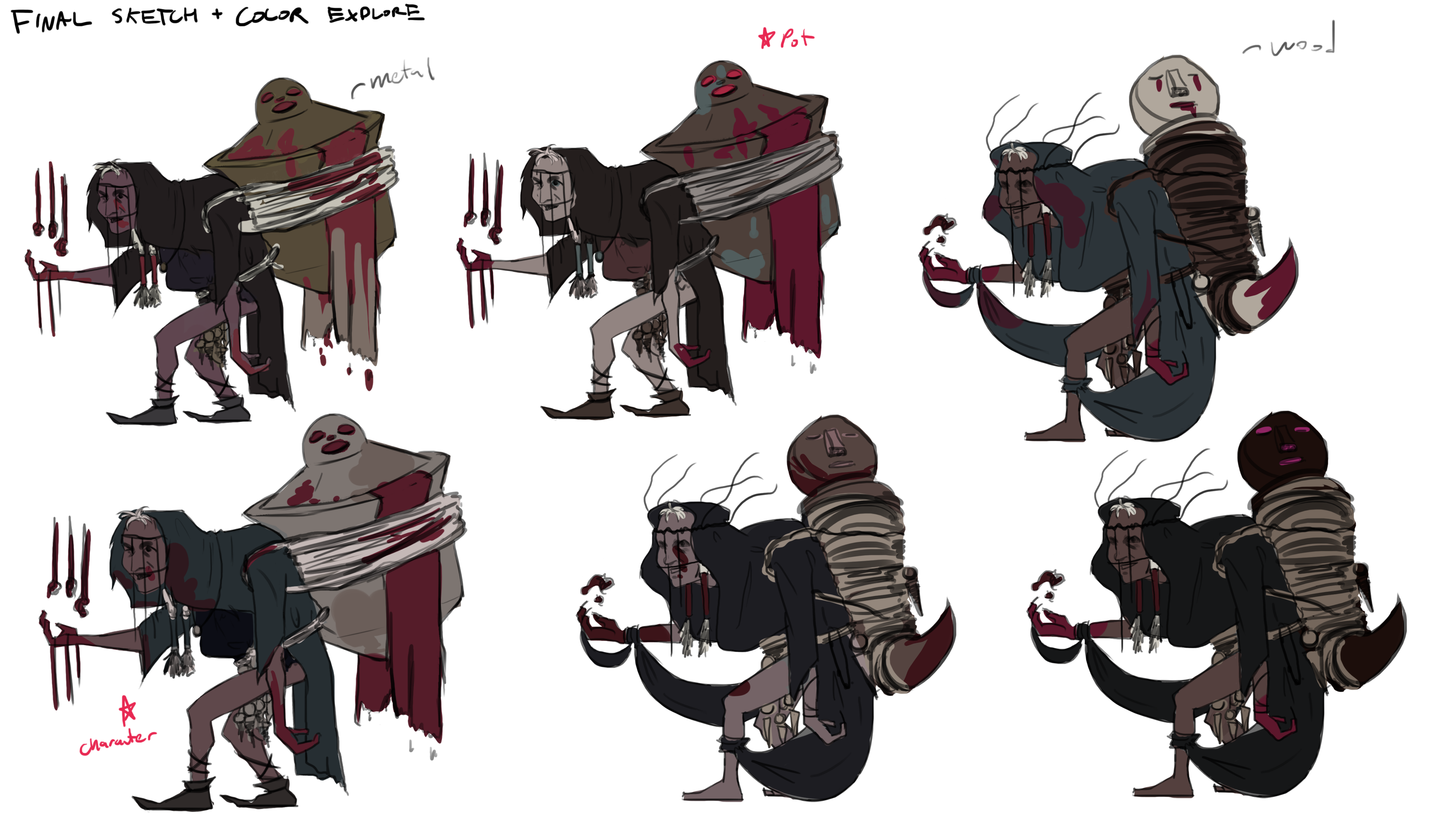 The String Fortune Teller (SFT) was once an enlisted mage in their country’s military. They suffered a head injury where they slowly started seeing visions and hallucinations. She repeatedly sought help from her country but was always ignored. She slowly started going crazy and now resides in the swamp where she tells fortunes using dolls soaked in her client’s blood.
